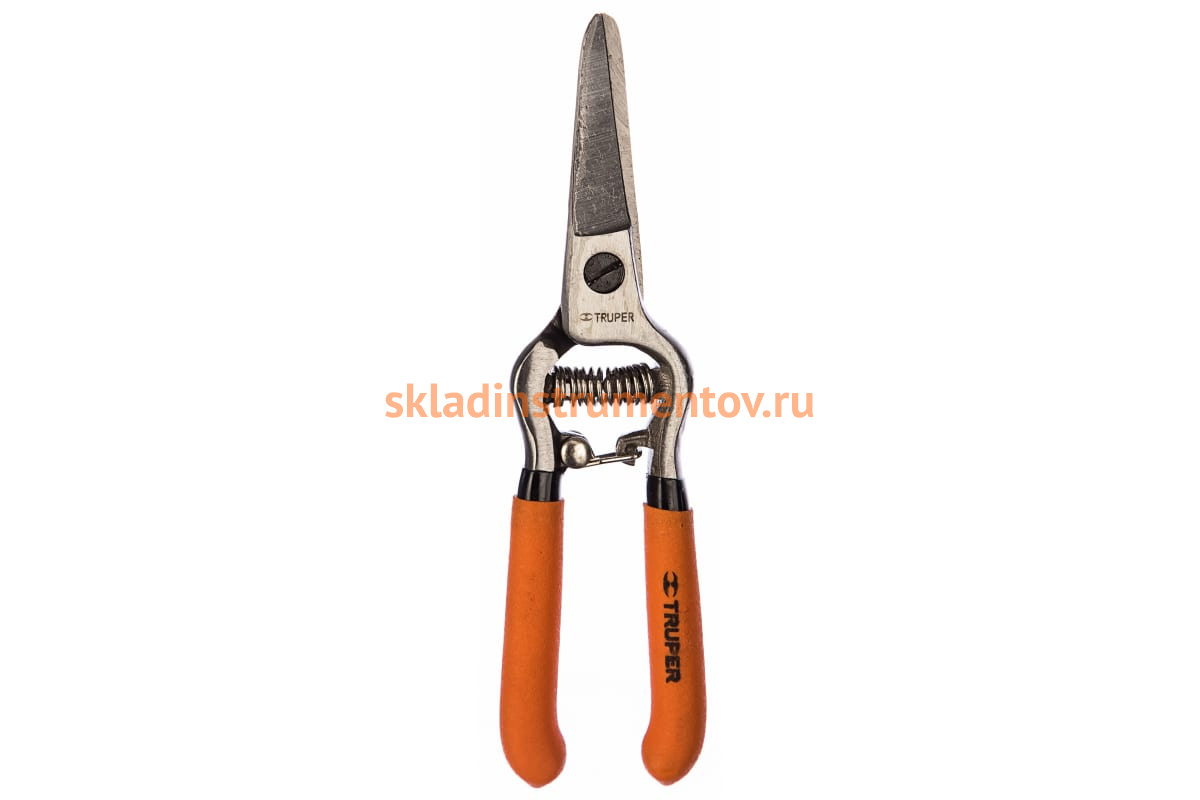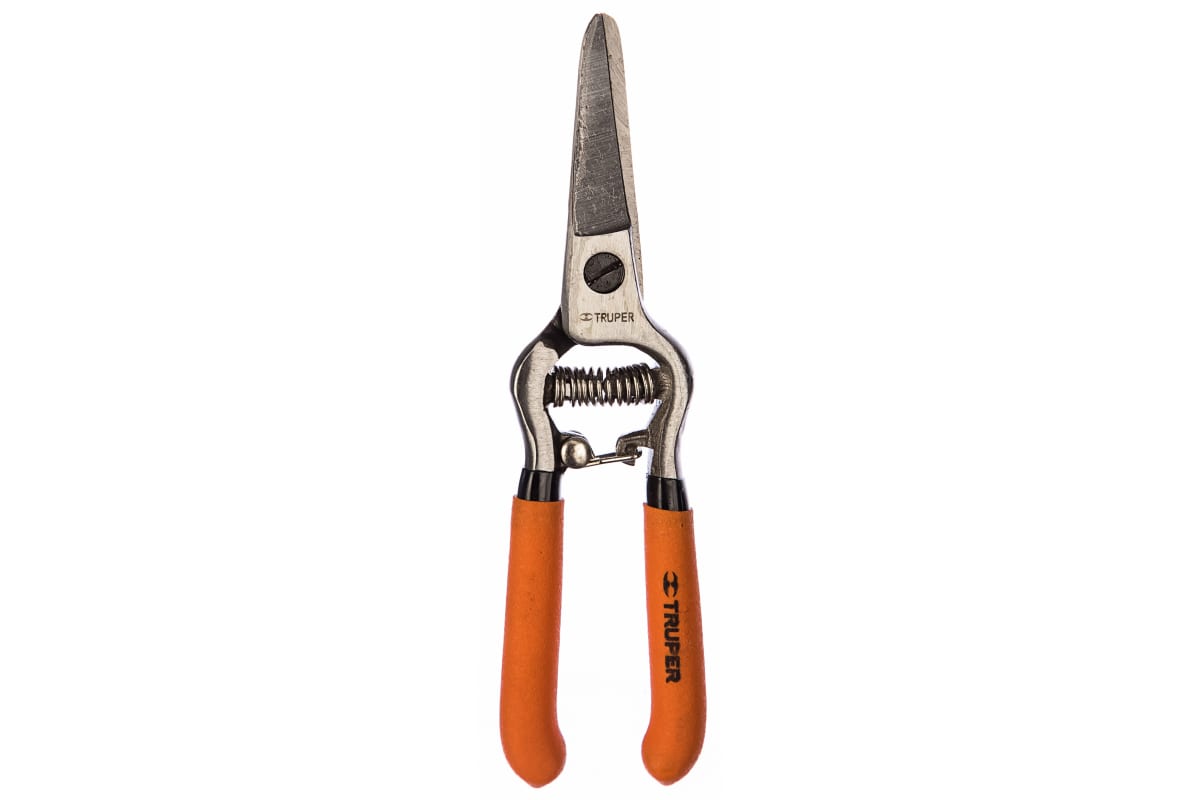 Секатор с тонким лезвием Truper T-20 длина 152 мм 18456 применяется для резки тонких ветвей кустарников и стеблей растений на садово-огородном участке. Инструмент прост и удобен в применении, его рукоятки имеют специальное покрытие, которое обеспечивает комфорт в работе. Стальные режущие части обладают повышенным рабочим ресурсом. Для более безопасного хранения изделия в неиспользуемом состоянии на его корпусе предусмотрен фиксатор в виде металлической петли и крючка.