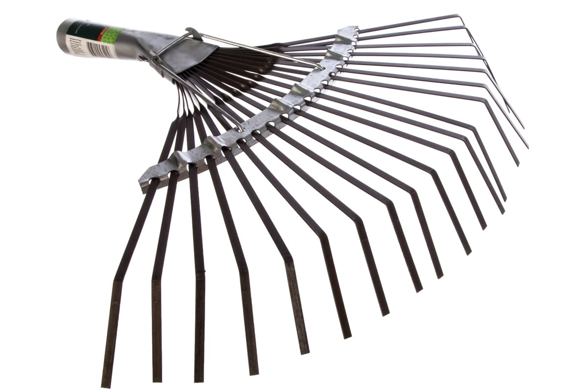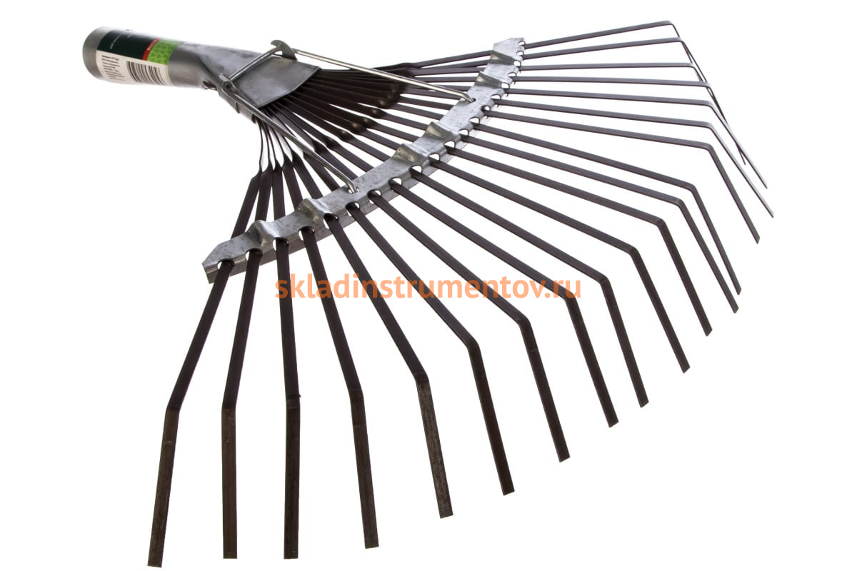Веерные грабли без черенка, 20 зубьев СИБРТЕХ 61778 используются для сбора опавшей листвы, срезанных веток, садового мусора. Прочный и качественный инструмент для комфортной работы в садовом участке.