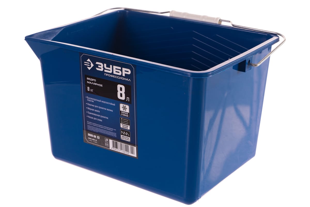 Малярное пластмассовое ведро 8 л, высокопрочное Зубр 0609-08_z02 оснащено специальным рельефом на внутренней стороне ведра.