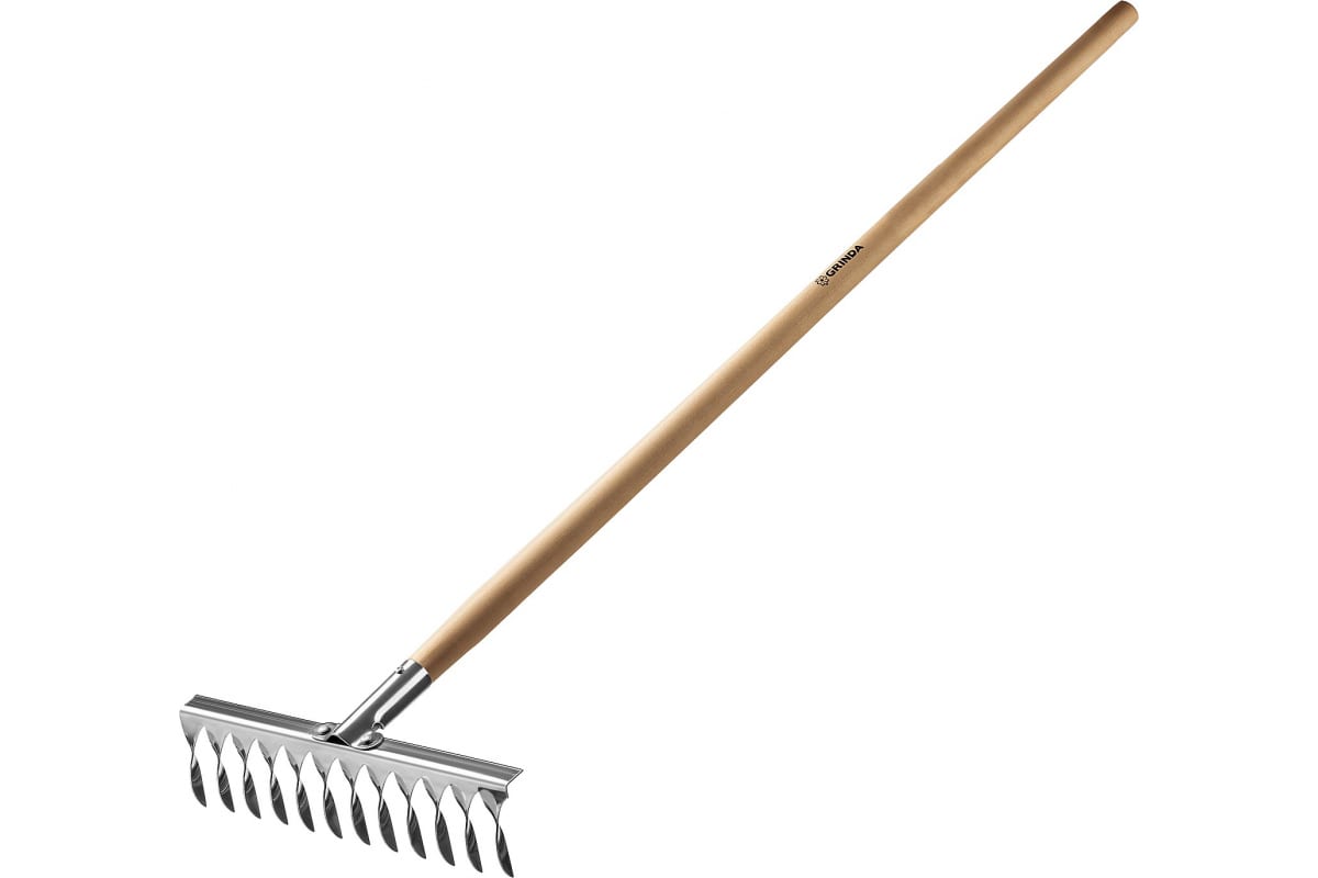 Грабли из нержавеющей стали GRINDA PROLine 12 витых зубцов 39481-12 – незаменимый инвентарь на садовом участке для очистки территории от скошенной травы, опавших листьев и другого мусора. Также применяются для выравнивания и рыхления почвы на грядах и клумбах. Витые зубья отлично удерживают сухой мусор, что увеличивает скорость работы. Рабочая часть изготовлена из нержавеющей стали, она не подвержена коррозии, что позволяет работать во влажной среде.