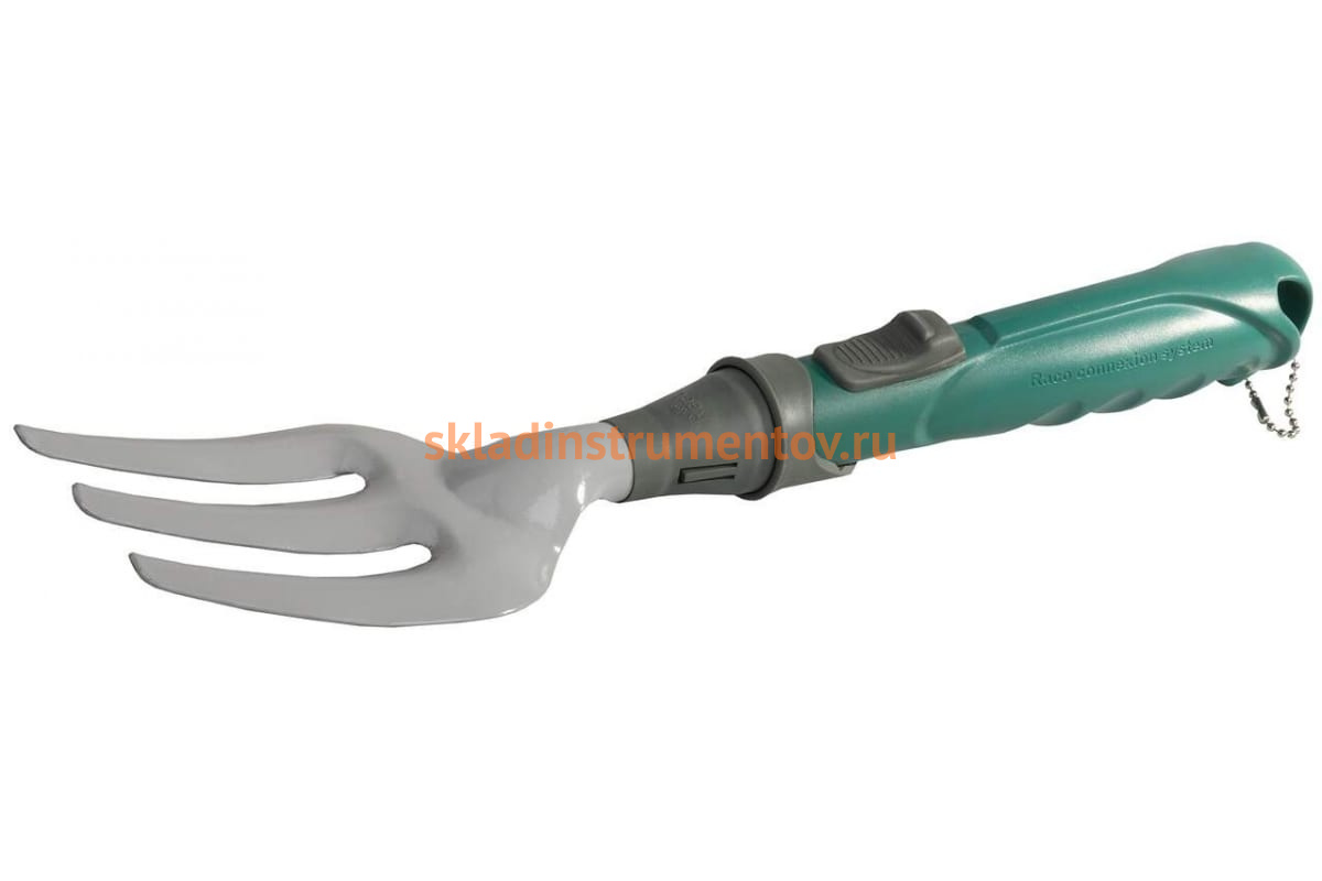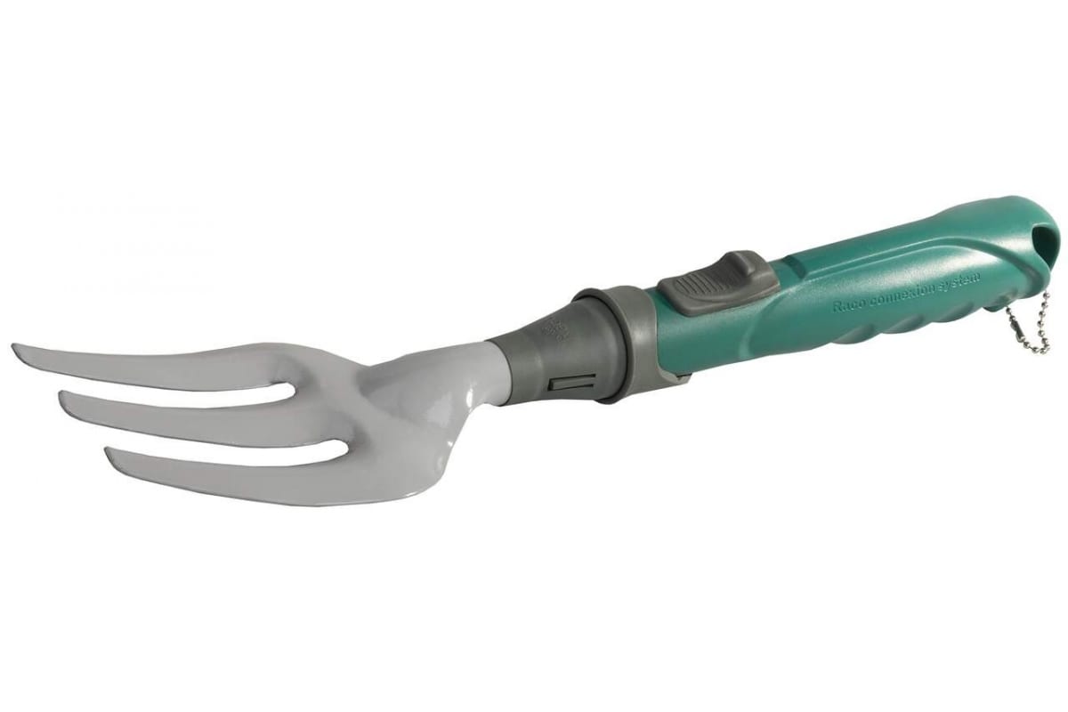 Посадочная вилка RACO 4205-53527 применяется в саду и огороде. Стальные зубцы имеют эпоксидное защитное покрытие, что увеличивает срок службы изделия. Можно использовать с удлиняющей ручкой, для этого пригодится быстрозажимной механизм, который гарантирует надежное соединение. Сменная ручка изготовлена из ударопрочного пластика. Для удобства хранения на конце рукоятки имеется отверстие.