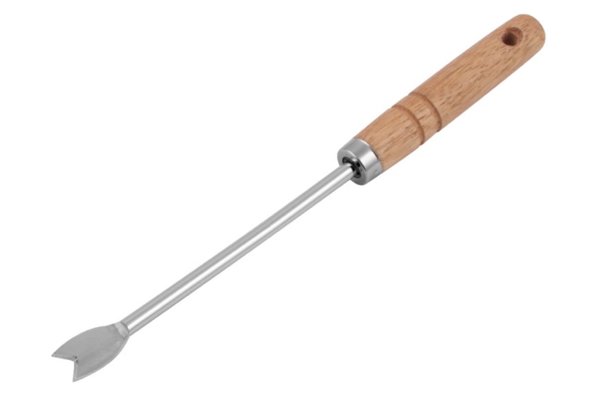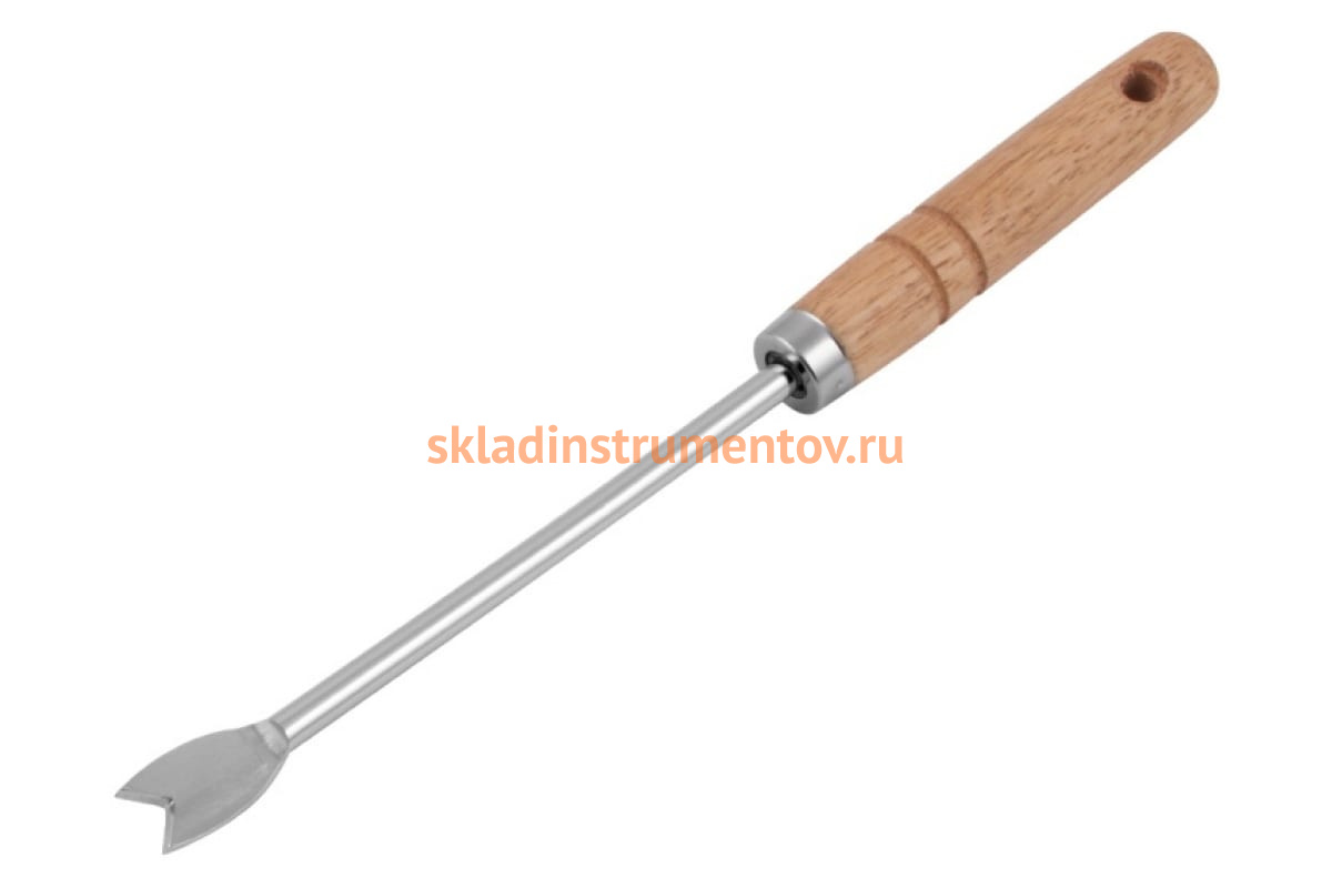 Корнеудалитель Центроинструмент 0532-4 используется для работы на садовом участке. Предназначен для удаления сорняков из почвы. Полотно инструмента выполнено из стали с нержавеющим покрытием, благодаря которому земля не налипает на полотно. Рукоять из дерева не скользит в руке.