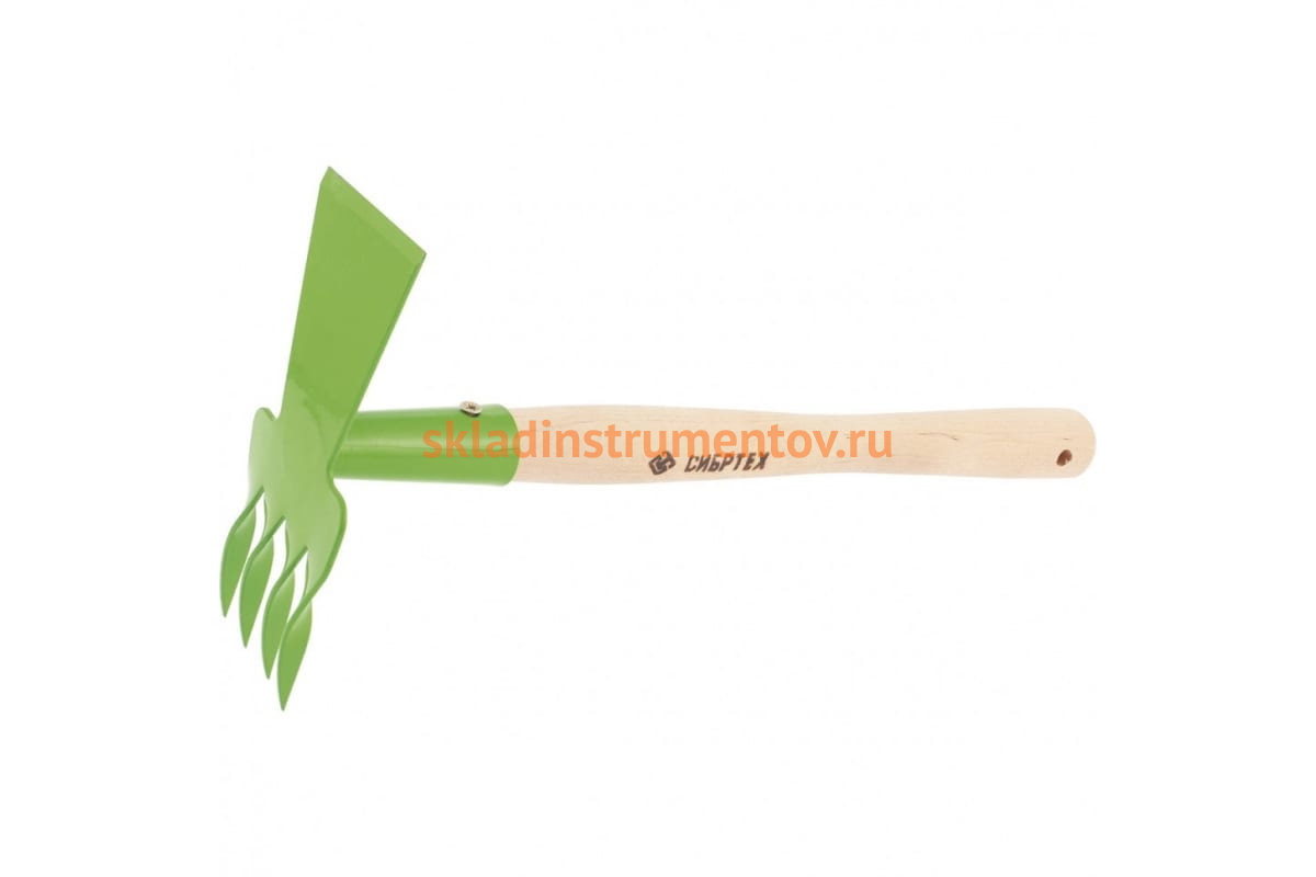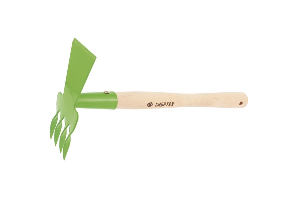 Рыхлитель 4-зубый, витой зуб, комбинированный, профиль "трапеция", деревянная рукоятка СИБРТЕХ 62342 подойдет для садовых работ:
