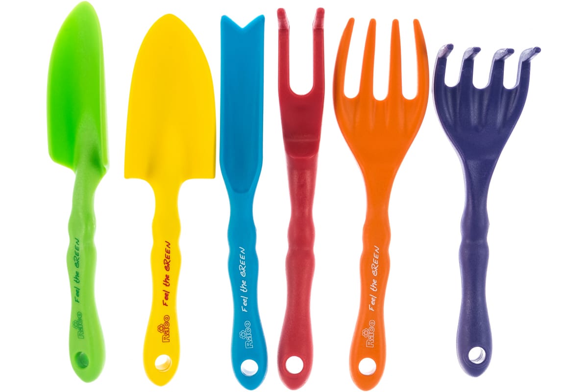Садовый набор RACO Mini tools 4225-53/451из шести предметов предназначен для ухода за растениями. Можно использовать в домашних условиях. Инструменты выполнены из высококачественной разноцветной пластмассы, поэтому легки и понравятся как взрослым, так и детям. Отверстия на рукоятках способствуют удобному хранению.
