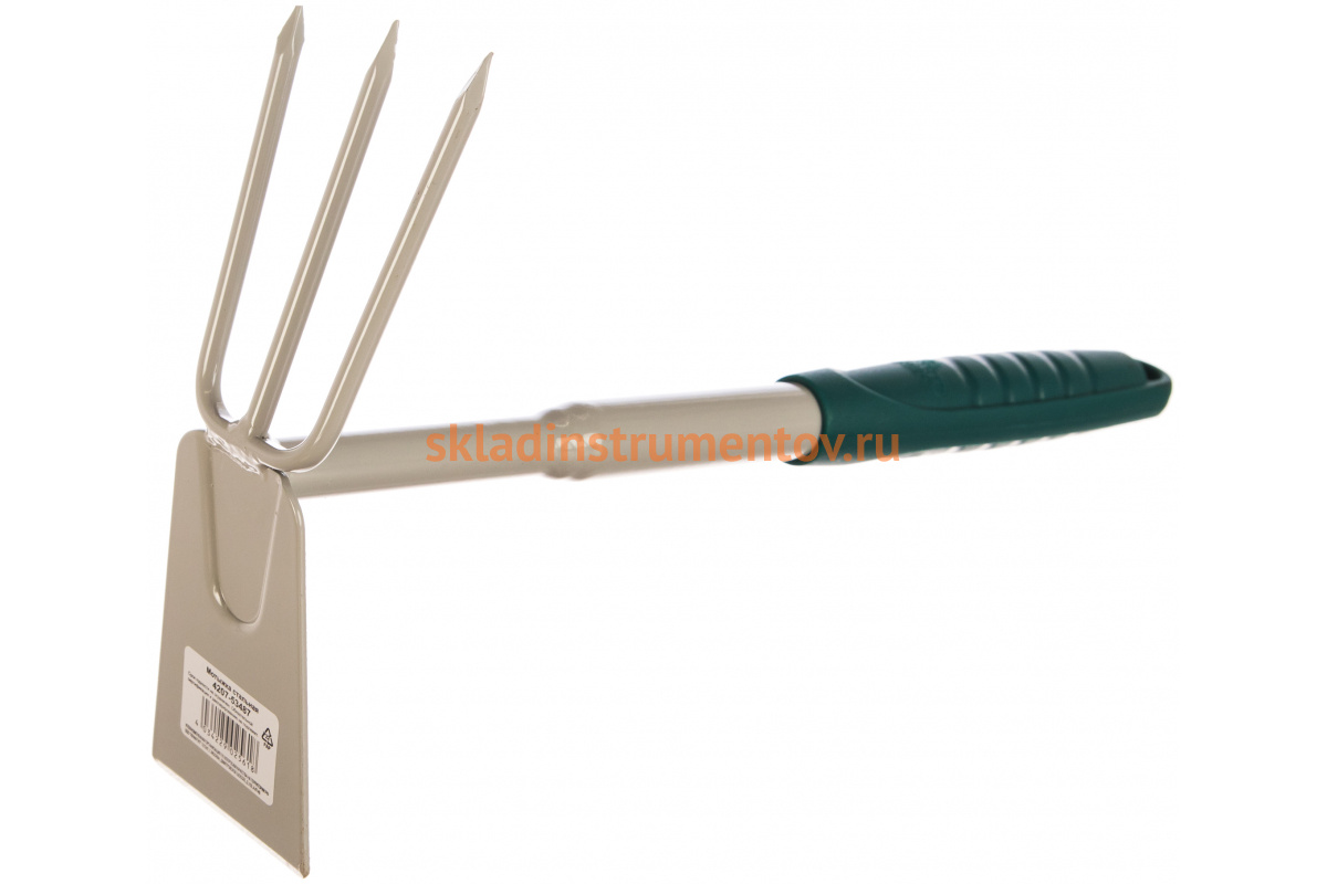 Садовая мотыжка RACO 4207-53487 применяется для посадки и ухода за садовыми и комнатными растениями. Рабочая часть - рыхлитель с тремя зубцами с одной стороны и двухстороннее лезвие - с другой. Мотыжка оснащена ударопрочной рукояткой из специального материала и рабочей частью из высококачественной стали, покрытой специальной защитной краской для увеличения срока эксплуатации. За счет отверстия на конце рукоятки можно хранить инструмент в подвешенном состоянии.
