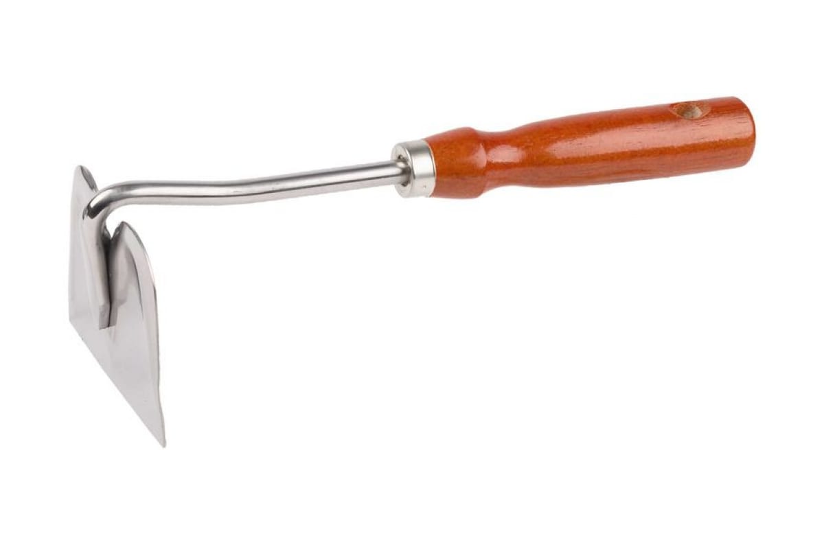 Садовая мотыжка GRINDA, прямое лезвие, 260мм 8-421131 применяется для разрыхления почвы, а также для прополки грядок, клумб и других посадок. Рабочая часть инструмента изготовлена из нержавеющей стали и крепко соединена с деревянной ручкой покрытой лаком.