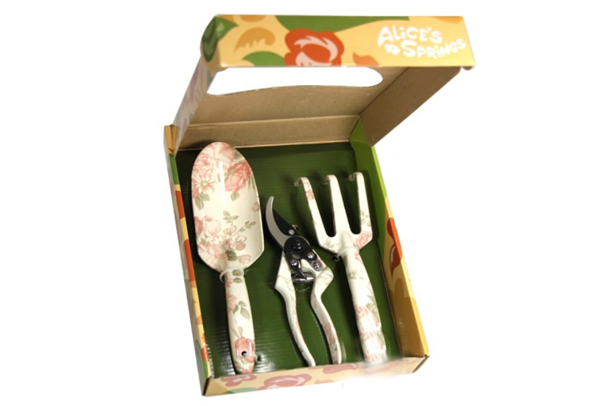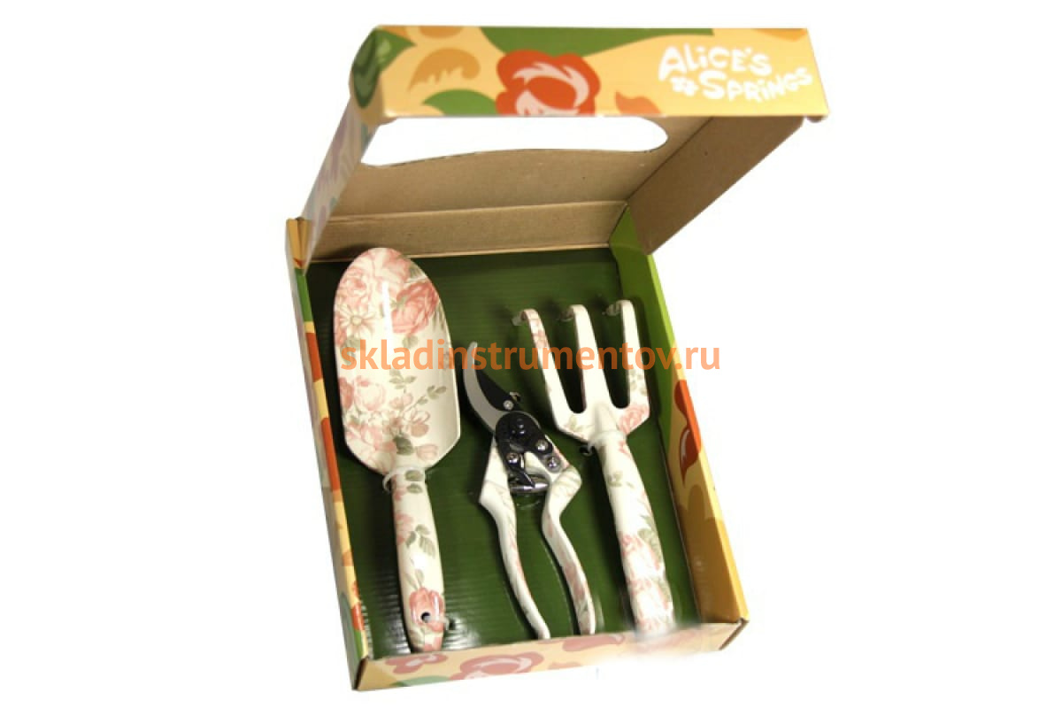 Садовый набор Розы из 3-х предметов: совок, секатор, вилка Центроинструмент 1114-1 применяется для работы на садовом участке. Секатор необходим для подравнивания веток или обрезания кустов, совок и вилка для обработки почвы или посадки растений. Инструменты выполнены из стали с рисунком в виде розы, который наносится на рукоятку по специальной технологии, делающей изображение долговечным. Упаковка, и сам инструмент выполнены в привлекательном дизайне, поэтому набор будет отличным подарком для человека, который любит работать в саду.