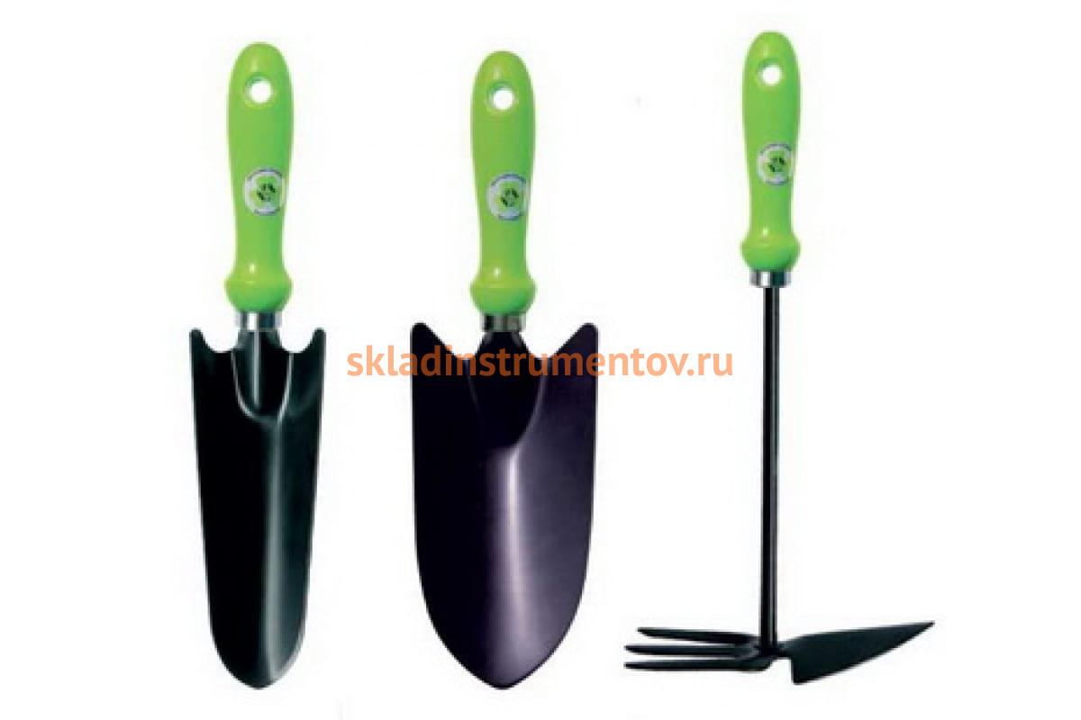 Садовый набор из 3 предметов Центроинструмент 0231-9 состоит их широкого совка, узкого совка и мотыжки. Рабочая часть, изготовленная из высоколегированной стали, обеспечивает надежность использования и долгий срок службы набора. Предусмотрены отверстия в ручках для подвешивания.