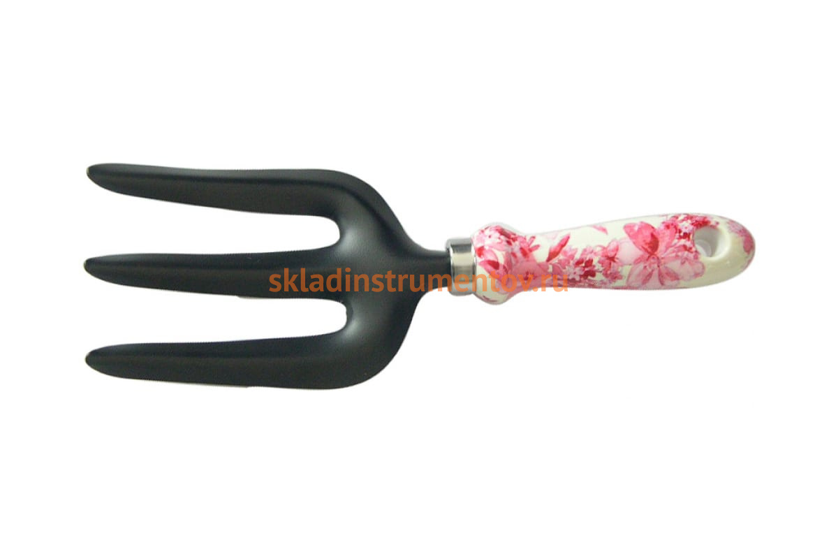 Садовая вилка Цветочный дизайн Центроинструмент 1112-2 применяется для обработки верхних слоев почвы перед посадкой, а так же для дальнейшего ухода за почвой (культивации или прополки). Рукоять с цветочным принтом изготовлена из пластика. Полотно из стали с тефлоновым покрытием, к нему не прилипает земля, делая ее применение комфортным.