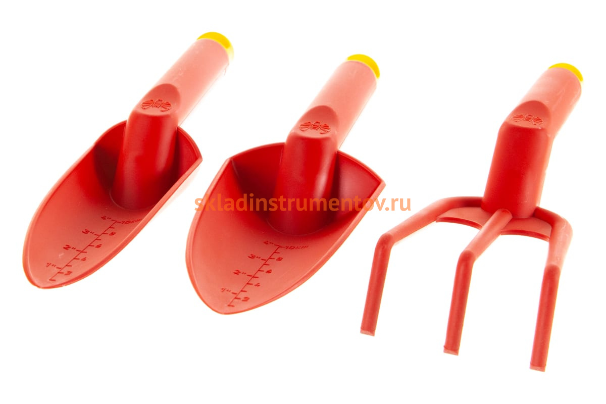 Посадочный набор GRINDA 3 предмета 421360-H3 предназначен для работ по обработке почвы в огороде или саду. Включает в себя рыхлитель, узкий и широкий посадочные совки. Рабочие части выполенены из нейлона, армированного фибергласом, не подверженного коррозии и обладающим прочностью металла. Удобные пластиковые рукоятки имеют ребристый рельеф для защиты от скольжения.