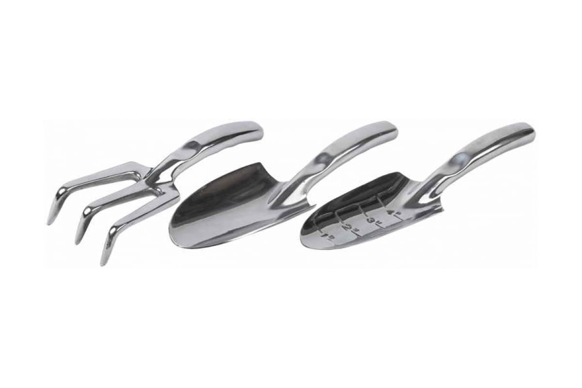 Посадочный набор GRINDA из трёх предметов 8-421760-H3 предназначен для посадки и ухода за цветами и овощными культурами. Выполнен из сплава алюминия, характеризующегося такими качествами как прочность и лёгкость. Набор состоит из рыхлителя, совка посадочного (60 мм) и широкого посадочного совка (74 мм).