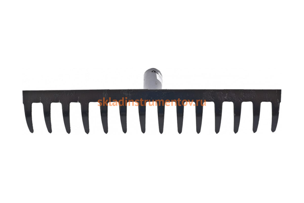 Прямые грабли без черенка 14 зубьев, 360мм СИБРТЕХ Россия 61747 - классический садовый инструмент для уборки скошенной травы, опавших листьев, мусора, а также рыхления почвы на грядках. Изделие полностью изготовлено из конструкционной углеродистой стали и покрыто порошковой эмалью для защиты от ржавчины. Диаметр тулейки для установки черенка равен 32 мм.