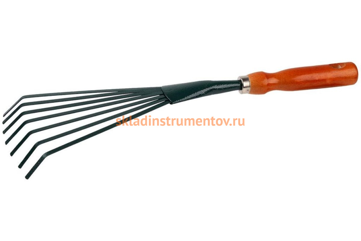 Веерные грабельки 390мм Grinda 8-421253_z01 предназначены для сбора листвы или аэрации почвы на садовом участке или в огороде. Грабли оснащены семью плоскими зубьями, которые изготовлены из высококачественной стали с покрытием "Hammertone". Эргономичная деревянная рукоять не скользит в руке и оснащена отверстием для подвешивания инструмента после использования.