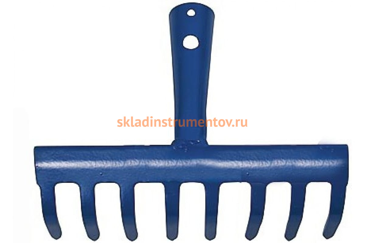 Садовые грабли 8 зубьев Контрфорс 217108 изготовлены из стали и покрыты краской. Инструмент предназначен для выполнения различных садовых работ, в частности для рыхления, чистки и выравнивания грядок.