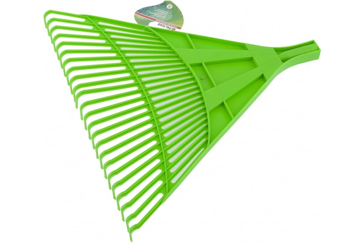 Веерные полипропиленовые грабли без черенка, 24 зуба PALISAD 61705 - оптимальный вариант для очистки грунтовой поверхности и газона от мусора, веток, сорняков, листьев и пр. Материалом для изготовления изделия служит полипропилен - материал высокой прочности и пластичности. Для дополнительного упрочнения конструкции предусмотрена секторная пластина.