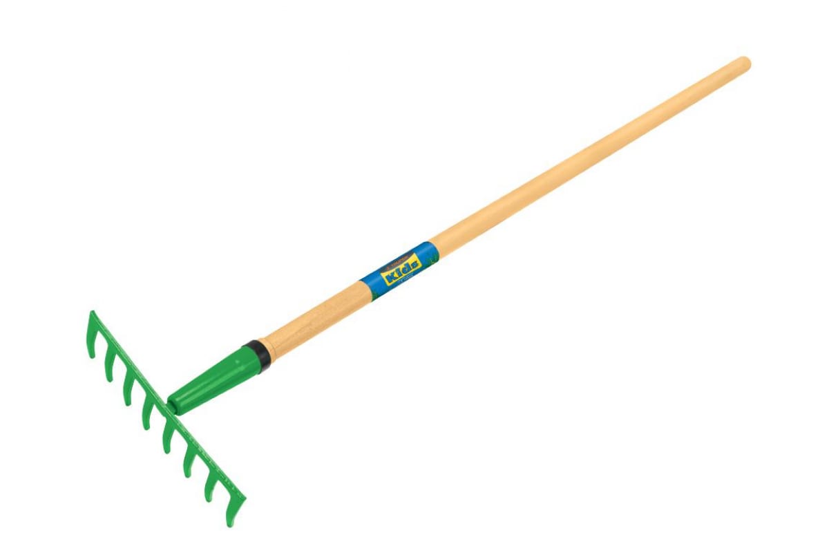 Садовые детские грабли TRUPER R8M-KID 17895 являются прочным и удобным садовым инструментом небольшого размера, позволяющим ребенку помогать с уборкой мусора, листвы и рыхления почвы на участке. Рабочая часть изготовлена из металла, окрашенного в зеленый цвет. Черенок изготовлен из дерева.