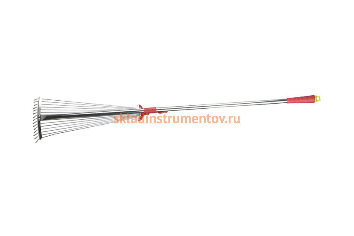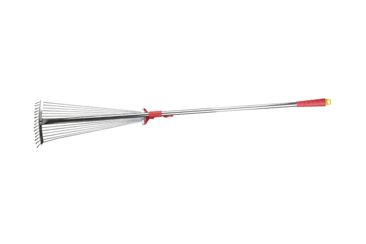 Ширина рабочей части регулируется за счет механизма фиксации зубцов. Благодаря этому грабли собирают большой объем листвы и скошенной травы. Это существенно экономит время и силы пользователя.