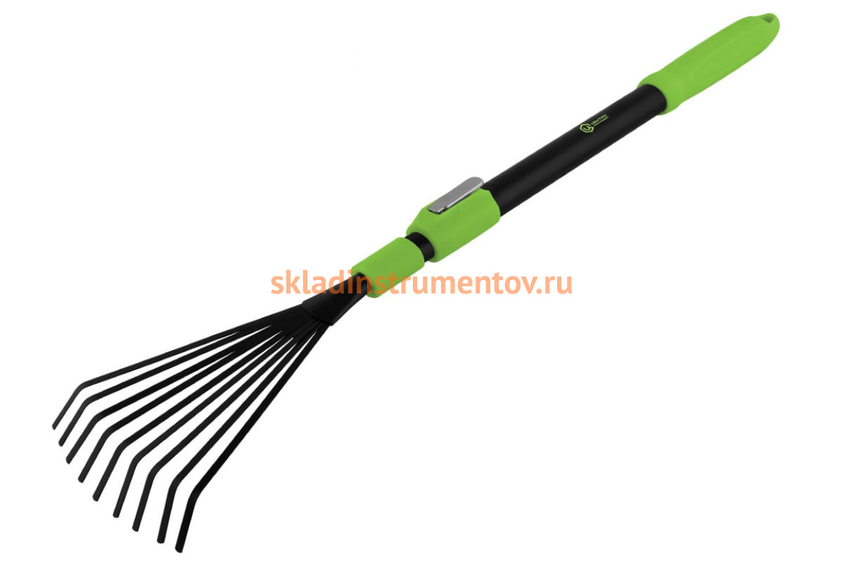 Веерные грабли с телескопической ручкой Центроинтсрумент ЦИ 1128-2 применяются для рыхления почвы и сбора мусора на участке.