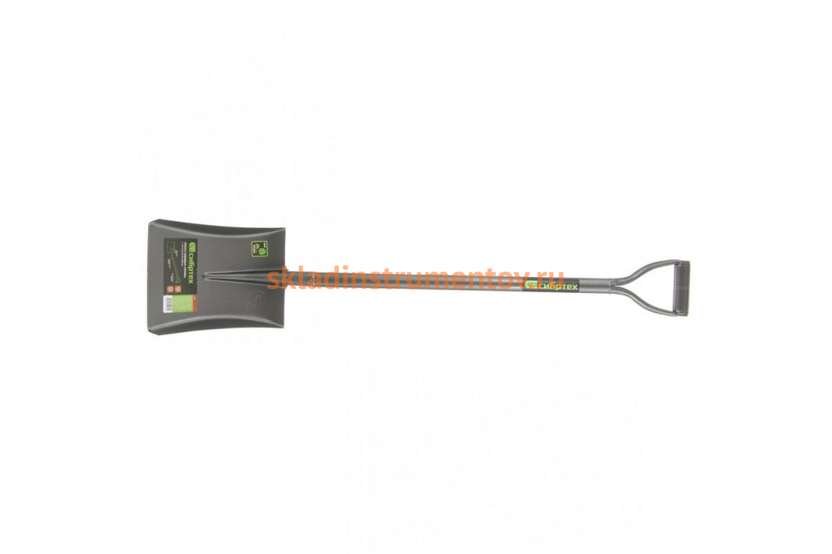Совковая цельнометаллическая лопата СИБРТЕХ 61473 имеет высокую прочность за счет пружинно-рельсовой стали и подойдет для работы с плотными грунтами.