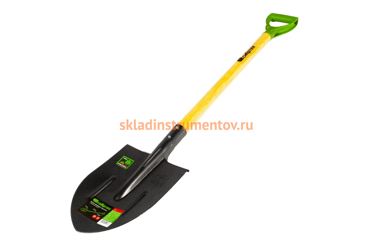 Штыковая лопата, деревянный черенок СИБРТЕХ 61479 покрыта порошковой эмалью., что позволяет защитить инструмент от коррозии.