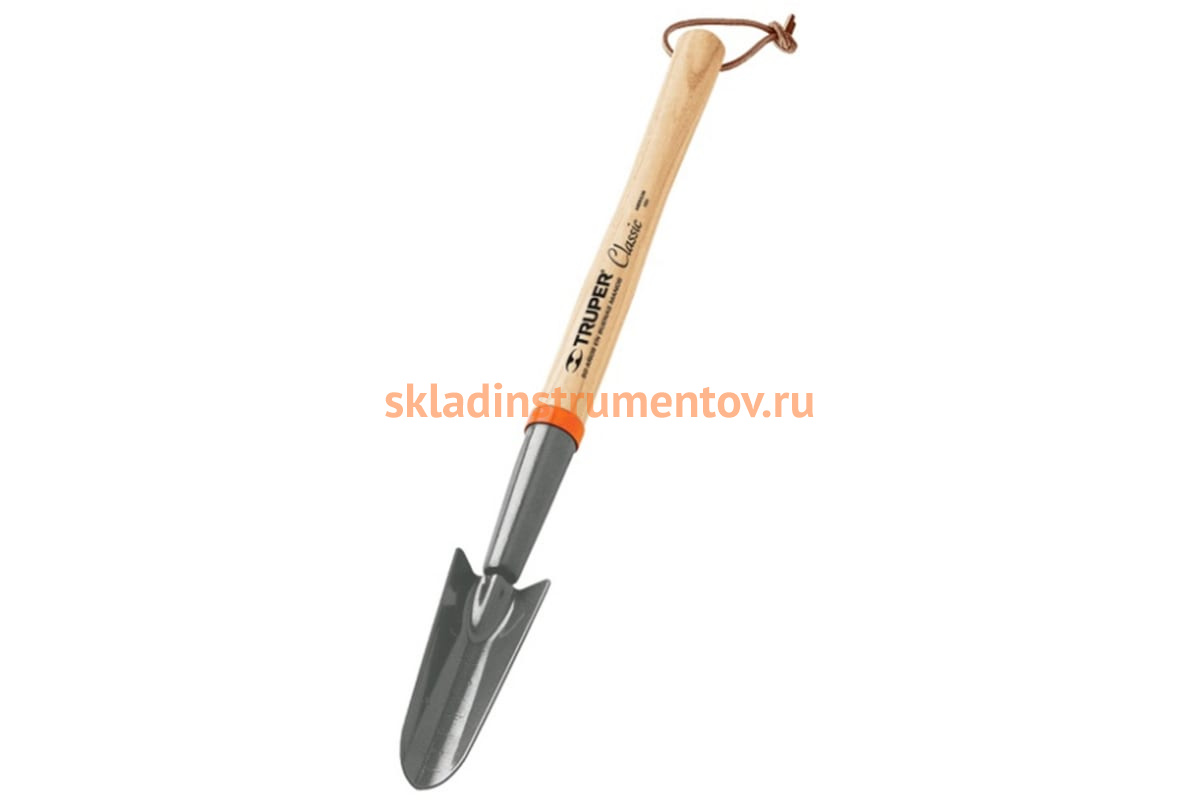 Садовый совок Truper GGTL-TR 15034 имеет узкое лезвие, что делает его удобным для посадочных работ на маленьких клумбах или грядках. Инструмент состоит из деревянного черенка и стальной рабочей части с длинным воротником для надежного крепления ручки.