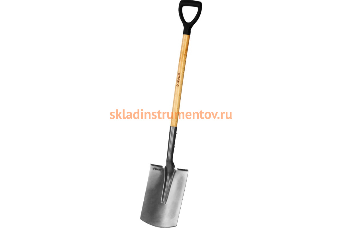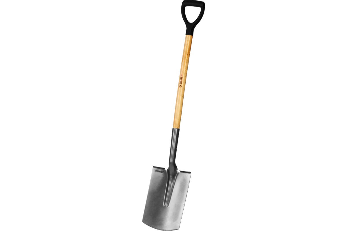 Лопата ФАВОРИТ Зубр штыковая, прямоугольная, деревянный черенок с рукояткой, проф 4-39513_z02
