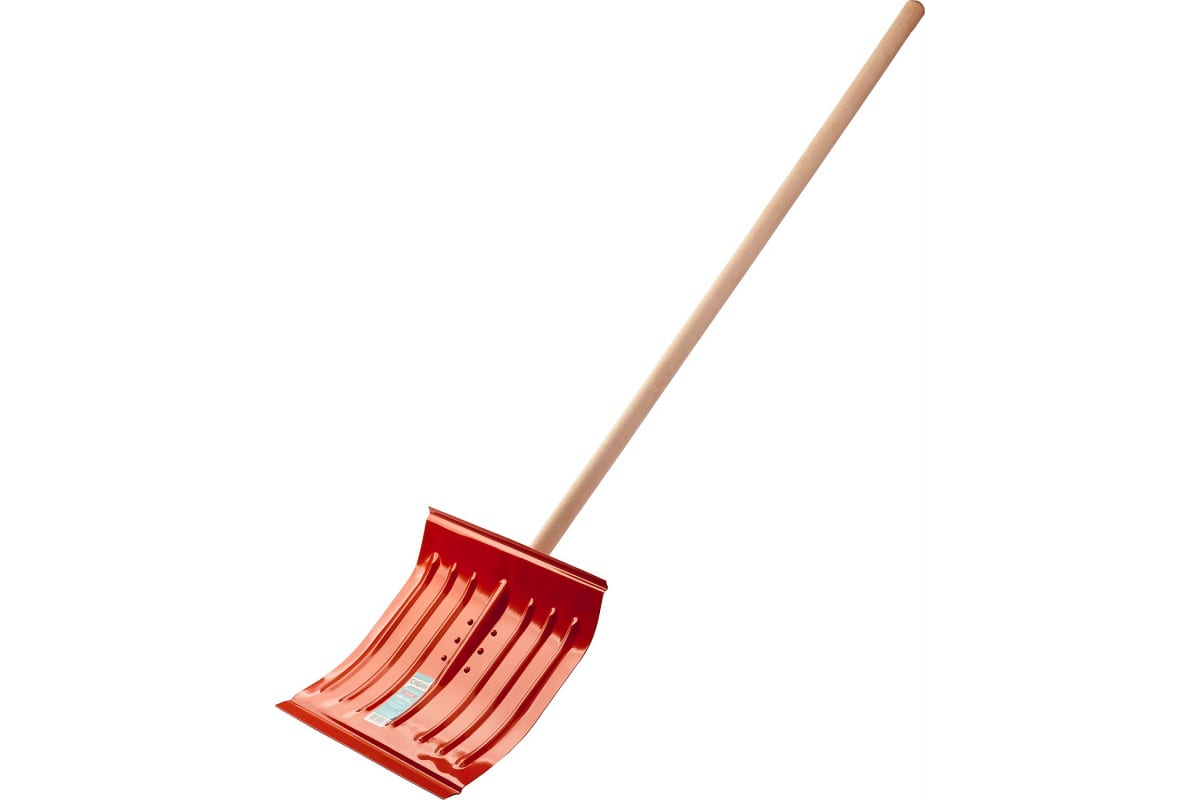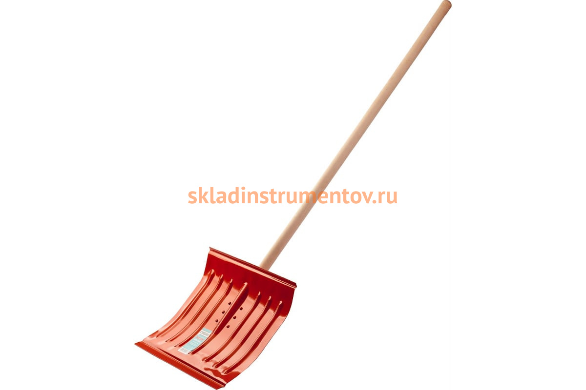 Снеговая стальная лопата с деревянным черенком, оранжевая, СИБИН 421841 подойдет для быстрой очистки от снега большой площади.