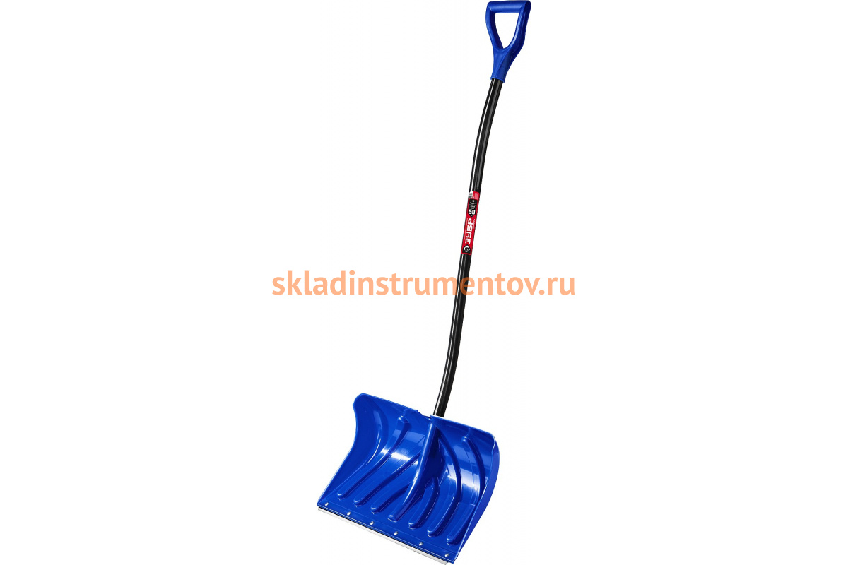 Пластиковая снеговая лопата со стальной планкой, Зубр СИБИРЬ эргономичный алюминиевый черенок, V-рчка, 500 мм 39925 имеет рабочую часть из морозостойкого полипропилена и дополнительные ребра жесткости. Это придает ей особую прочность и обеспечивает высокую стойкость к износу.