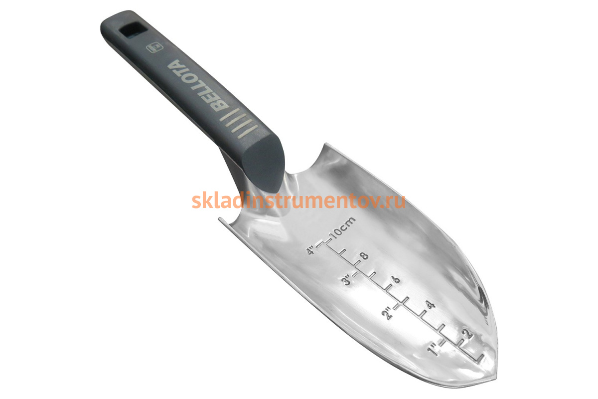Садовый совок Bellota 8 мм 3001 целиком отлит из алюминия. Зубцы обладают специальной формой, которая не вредит корням.