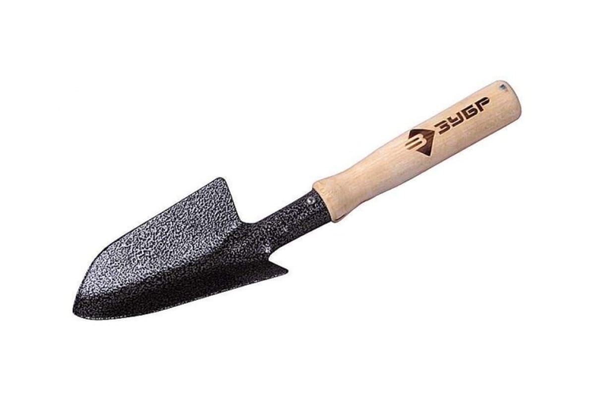 Садовый совок ЗУБР 4-39603 - сельскохозяйственный инструмент для работы с грунтом. Широкое основание и заостренное окончание позволяют не только выкапывать ямки для рассады, но и рыхлить почву и окучивать небольшие растения. Совок справляется с твердым грунтом, так как его полотно сделано из стального проката.