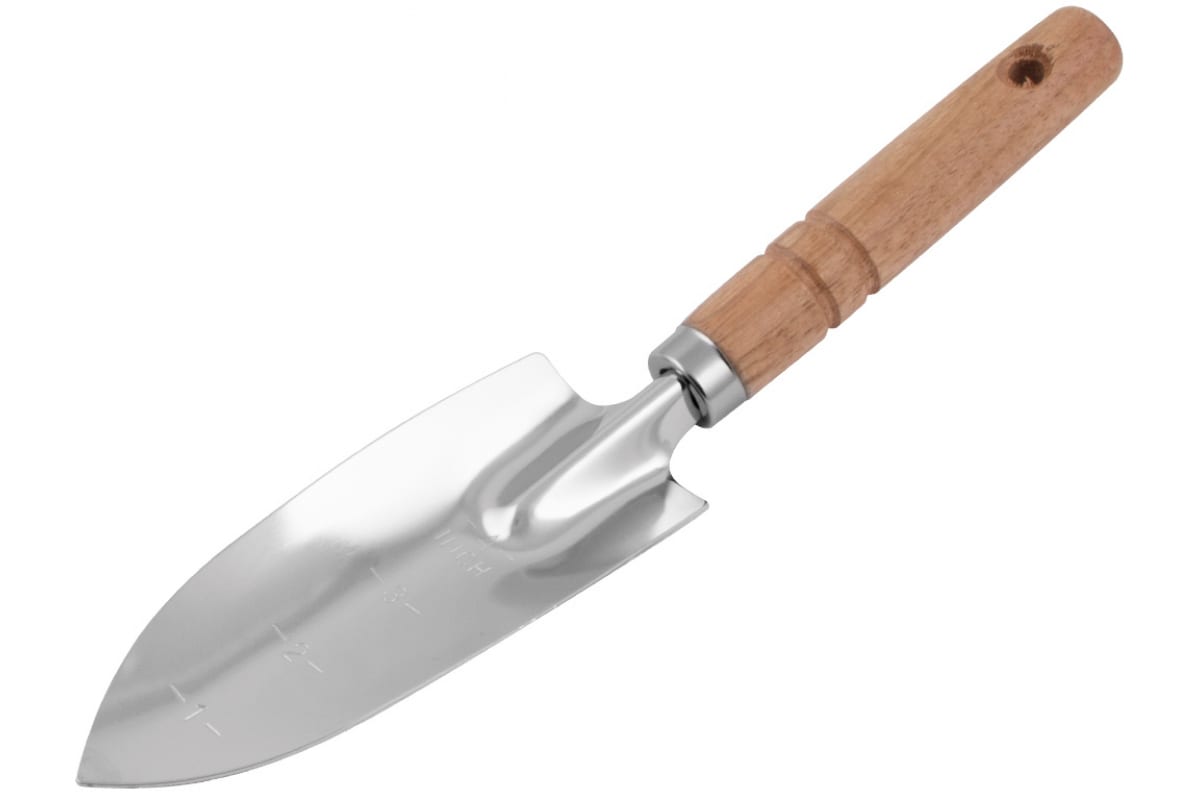 Узкий совок Центроинструмент 0532-2 применяется для работы на садовом участке. Используется для посадки или пересадки растений. Полотно выполнено из стали с тефлоновым покрытием, благодаря которому мокрая земля не налипает на инструмент, делая применение совка более комфортным. Рукоять из натурального дерева не скользит в руке и имеет отверстие для подвешивания его на крючок.