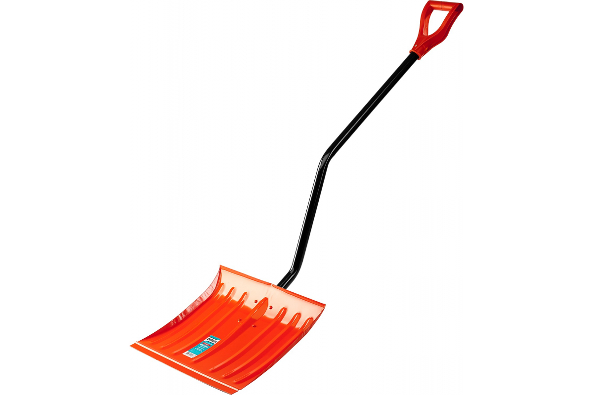 Снеговая стальная лопата с металлическим черенком и V-образной ручкой СИБИН 465мм, оранжевая, 421849 подойдет для быстрой очистки большой площади от снега.