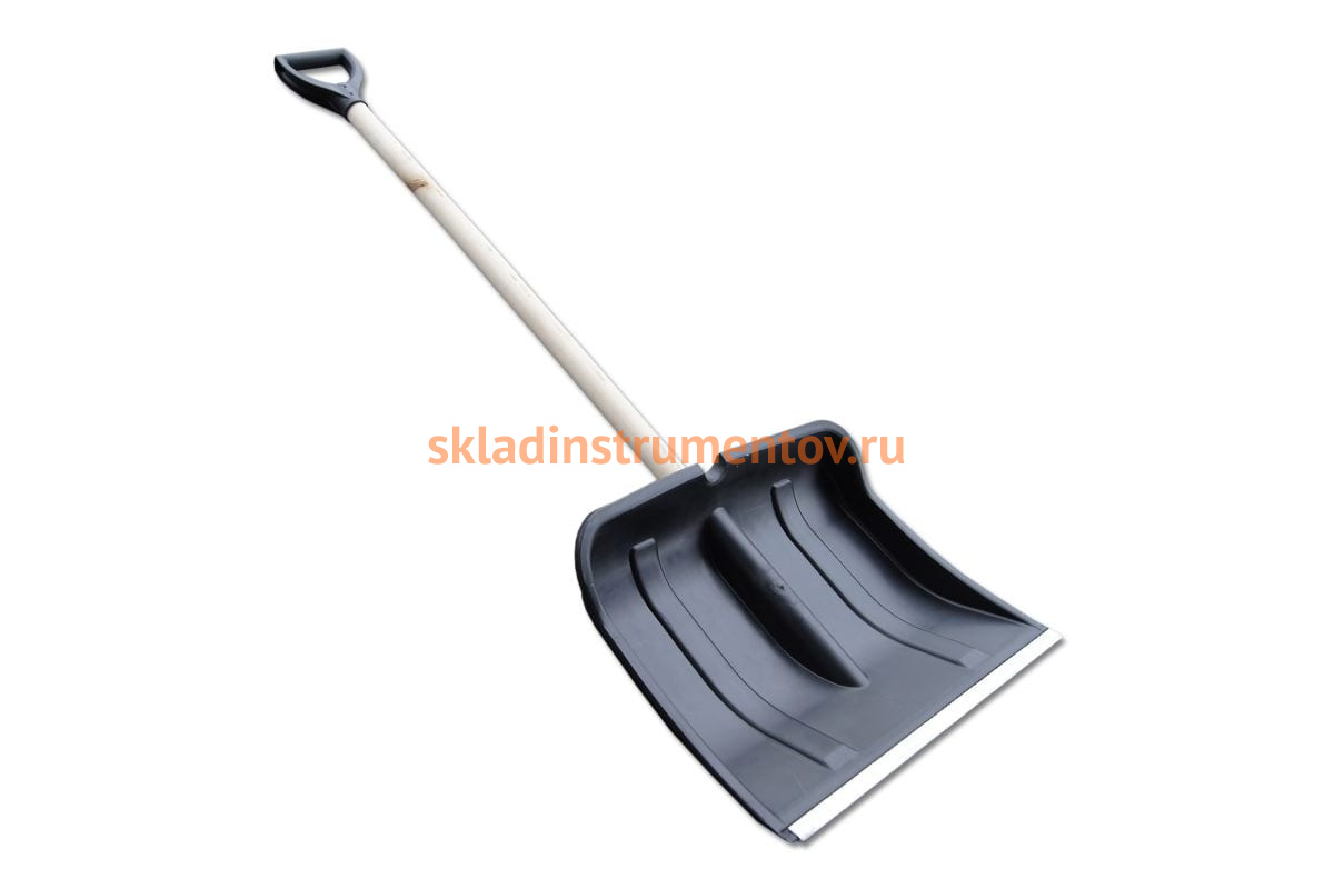 Снеговая пластмассовая лопата SANTOOL 440х315 090119-114 поставляется в сборе с черенком. На конце черенка расположена V-образная ручка. Рабочая часть изготовлена из пластика с оцинкованной накладкой. Размер совка - 440х315 мм.