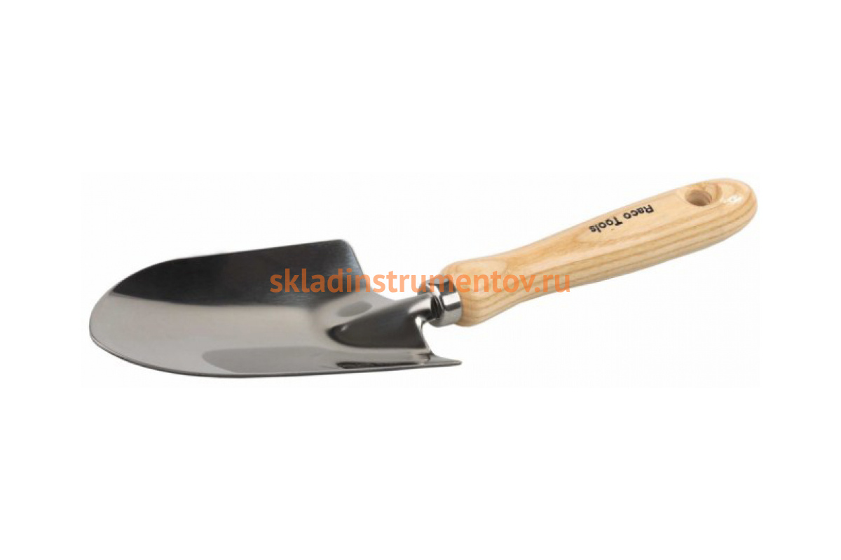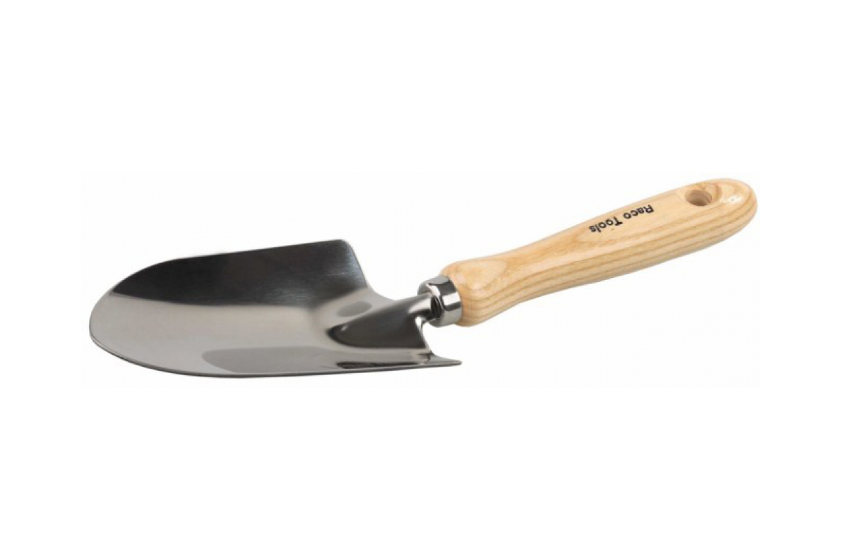 Широкий совок RACO 42075-53551 предназначен для посадки цветов и небольших кустов. Рукоятка отполирована и покрыта лаком, что предотвращает гниение дерева. Рабочая поверхность выполнена из нержавеющей стали, это увеличивает срок службы инструмента.