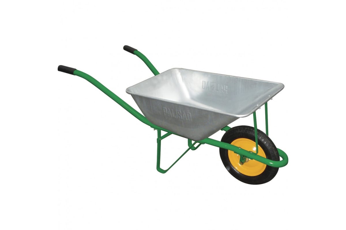 Садовая тачка 150кг, 58л PALISAD 689103 оснащена прочным стальным кузовом, двумя опорными ножками и одним пневматическим колесом на подшипнике. Изделие предназначено для погрузочных и транспортировочных работ на строительной площадке или садовом участке.