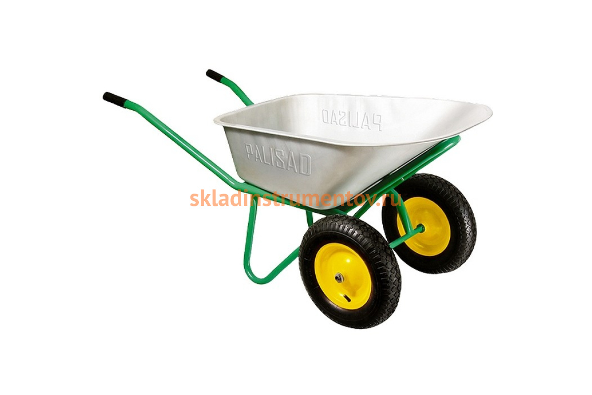 Строительная, 2-х колесная, усиленная тачка грузоподъемность 320 кг, объем 100 л PALISAD 68923 подойдет для работ в сложных условиях: