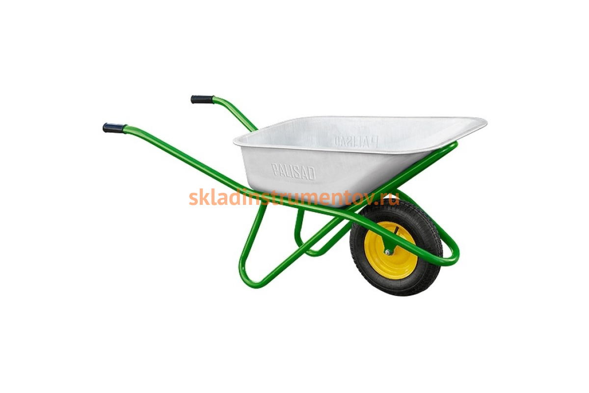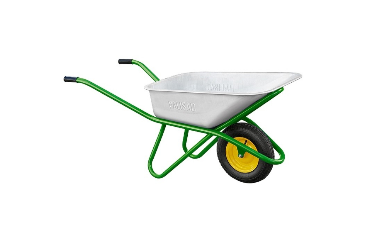 Садово-строительная усиленная тачка PALISAD грузоподъемность 200 кг, объем 90 л 6891839 предназначена для перевозки строительных материалов, а так же различных грузов при проведении сельскохозяйственных работ.
