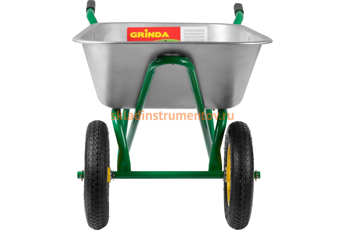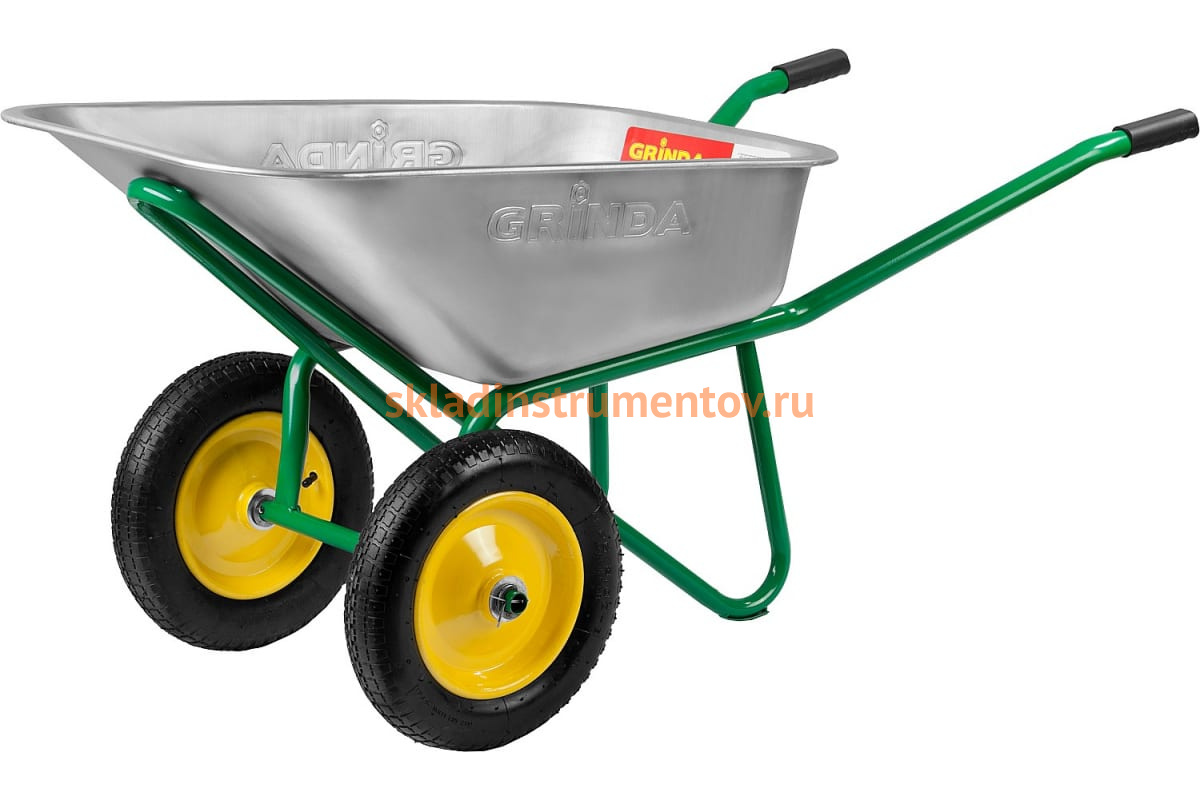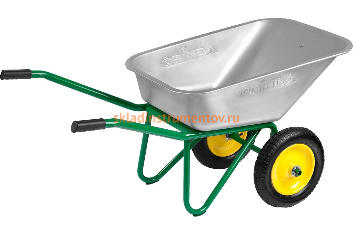 Строительная двухколесная тачка, 110 л, грузоподъемность 220 кг GRINDA 422394_z01 широко используется для перевозки грунта и других хозяйственных материалов.
