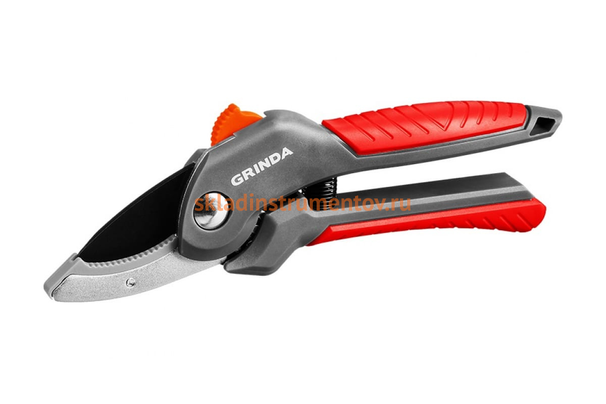 Контактный секатор Grinda 423124 с шестеренной передачей, которая увеличивает силу реза.