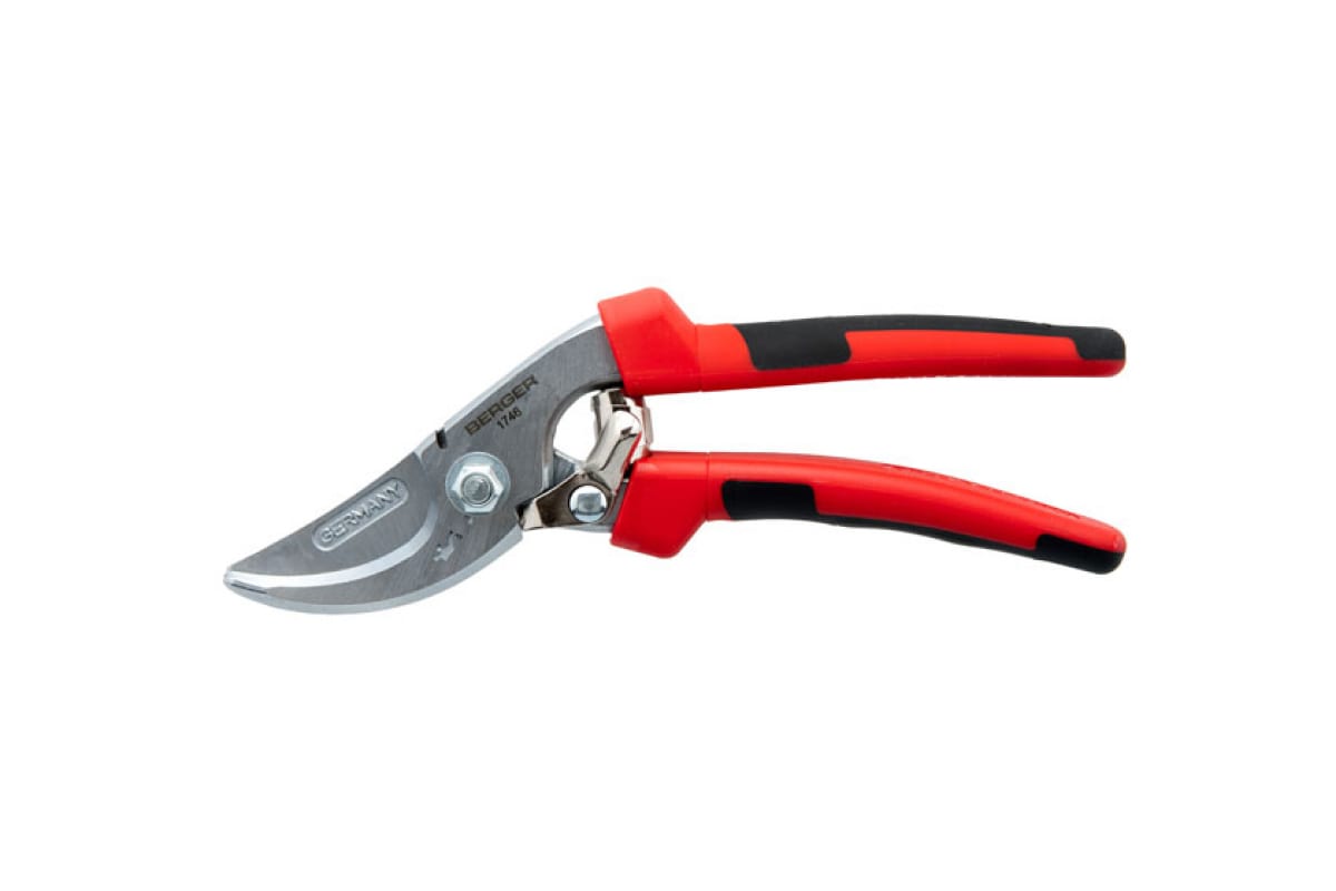 Секатор BERGER 1746 оснащен специальными композитными накладками на ручках, что гарантирует уверенный обхват и точное управление инструментом во время резания. Прочные и острозаточенные лезвия из кованного металла обладают повышенным рабочим ресурсом и обеспечивают чистый и плавный срез веток и стеблей растений. Режущая головка имеет специальный уклон для меньшей утомляемости кисти руки. Специальная насечка на верхней части лезвия делает инструмент более функциональным, она позволяет перекусывать проволоку без применения вспомогательного инструмента.