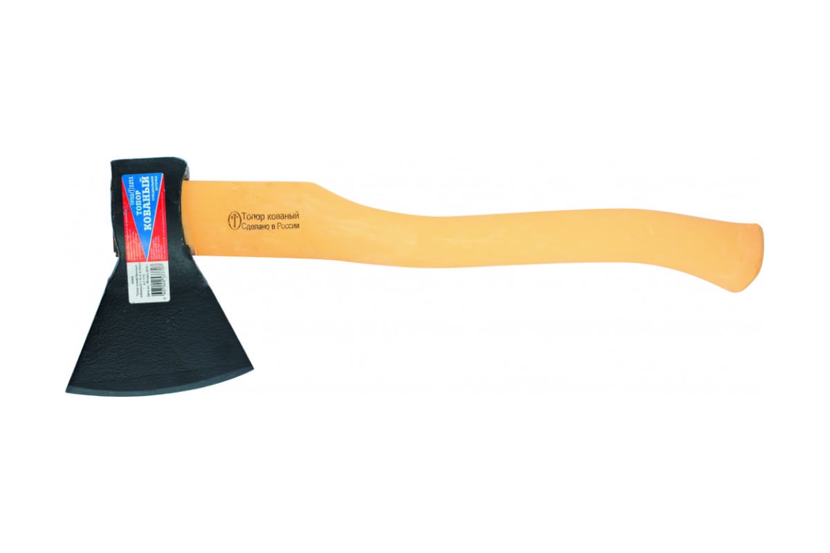 Кованый топор в сборе, 800 950 г, деревянное топорище СИБРТЕХ 21686 способен выдержать высокую нагрузку. Цельнометаллическая заготовка обуха имеет прочность за счет марки стали.