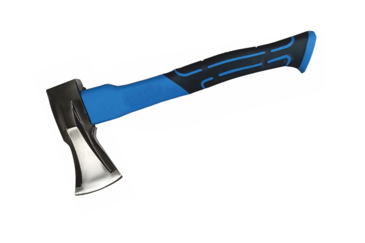 Топор-колун МастерАлмаз с фиберглассовой рукояткой, 1000 г, 450 мм 10507082 предназначен для рубки веток и колки небольших поленьев. Инструмент имеет фиберглассовую рукоятку, отличающуюся прочностью и неприхотливостью. Резиновые вставки не позволяют топору выскальзывать из рук оператора даже при сильном замахе. Твердость закалки рабочей поверхности – 47HRC.