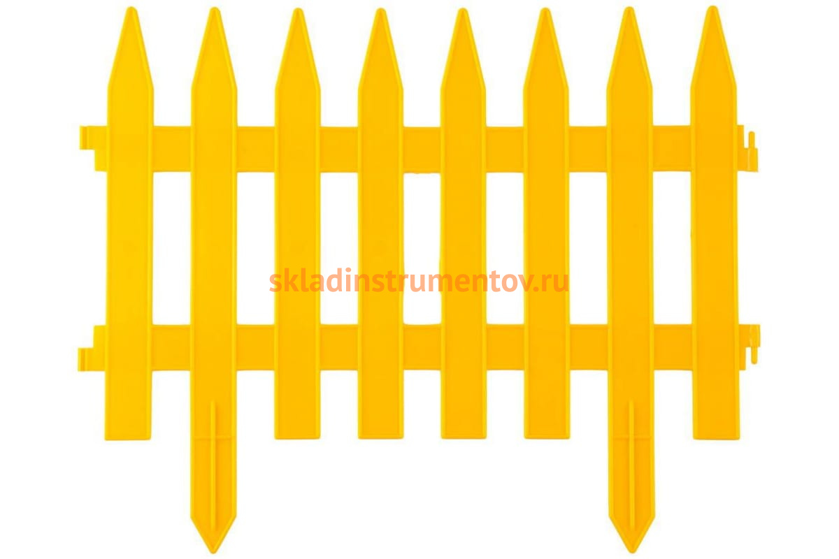 Декоративный забор Grinda КЛАССИКА 28x300 см, желтый 422201-Y используется для зонирования садовых и парковых участков. Семь секций позволяют создать ограждения различной геометрической формы. Забор изготовлен из полипропилена, устойчивого к негативному воздействию ультрафиолета.