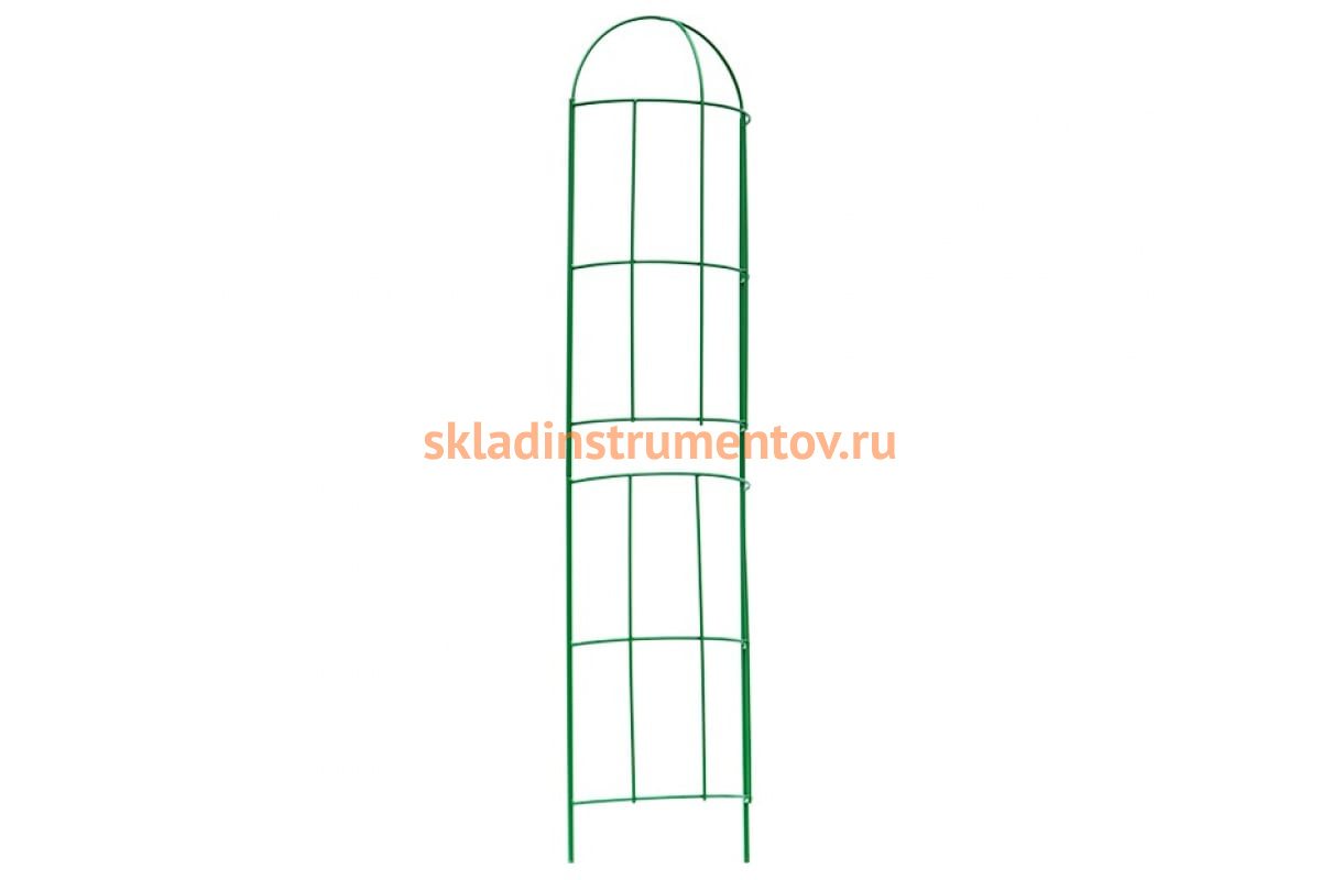 Декоративная шпалера GRINDA "ОВАЛ" разборная, 210х36 см 422259 предназначена для оформления вьющихся растений при проведении ландшафтных работ. Данная модель изготовлена из стальной трубы Ø10 мм и обладает высокой прочностью. Изогнутая форма обеспечивает надежную фиксацию в грунте и наилучшую устойчивость всей конструкции.