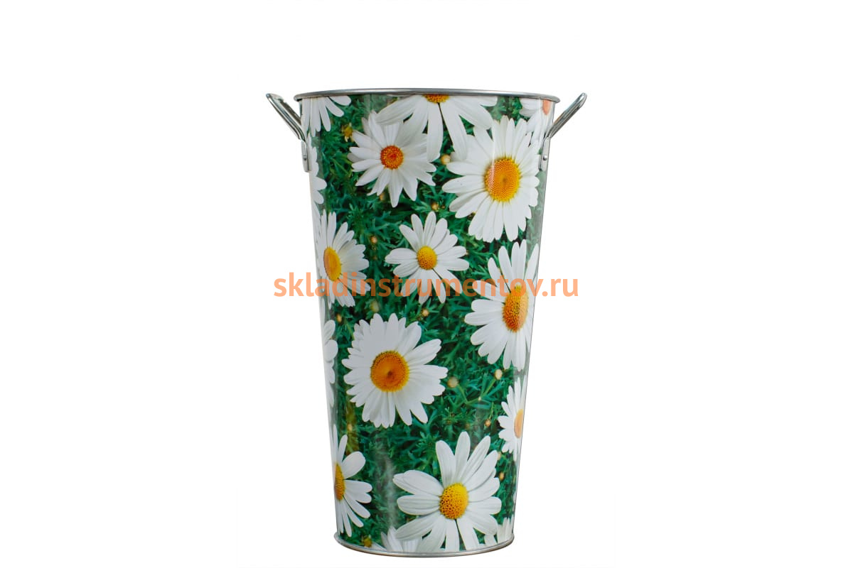 Вытянутое оцинкованное ведро с ручками 5,5 литров Центроинструмент Ромашки 1042-5,5-1 - емкость для переноски и хранения небольшого количества воды, песка, удобрений. Используется на садовом участке. Ведро оборудовано ручками, для удобства переноски или подвешивания. Емкость выполнена из металла и имеет цинковое покрытие - для продолжительного срока службы.