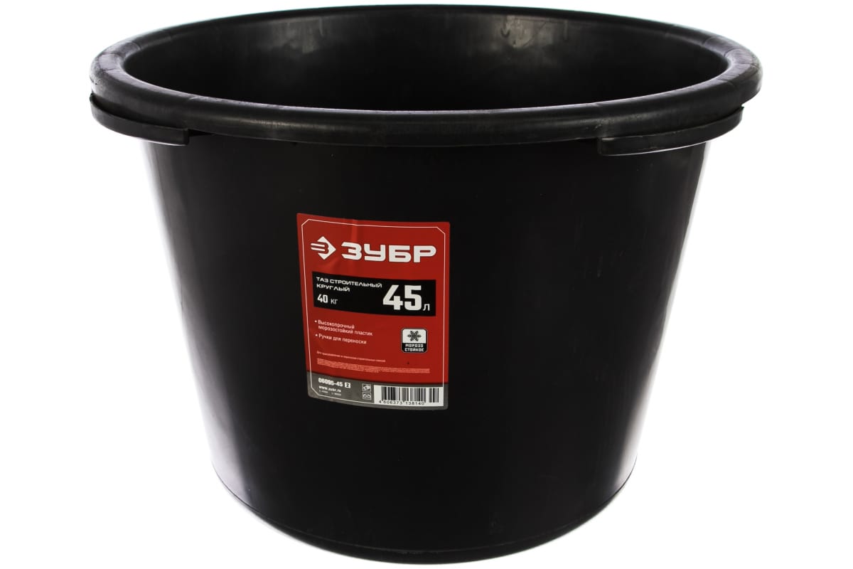 Строительная пластмассовая кадка Зубр ЭКСПЕРТ 06095-45_z01 объемом 45 литров служит для замешивания растворов. Надежный ударопрочный материал обеспечивает долгий срок службы изделия. Есть удобные ручки для транспортировки. Черный цвет не раздражает глаза пользователя.