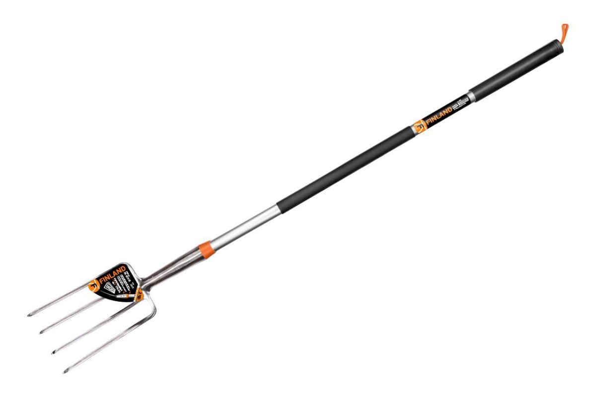 Садовые вилы Центроинструмент FINLAND МИНИ 1505 удобно использовать при переноске перегноя или скошенной травы. Инструмент изготовлен из прочной нержавеющей стали с удобной алюминиевой рукояткой. Дополнительное полимерное покрытие обеспечивает высокое качество работы. Общая длина инструмента составляет 125 см. Длина рабочей части: 24 см.