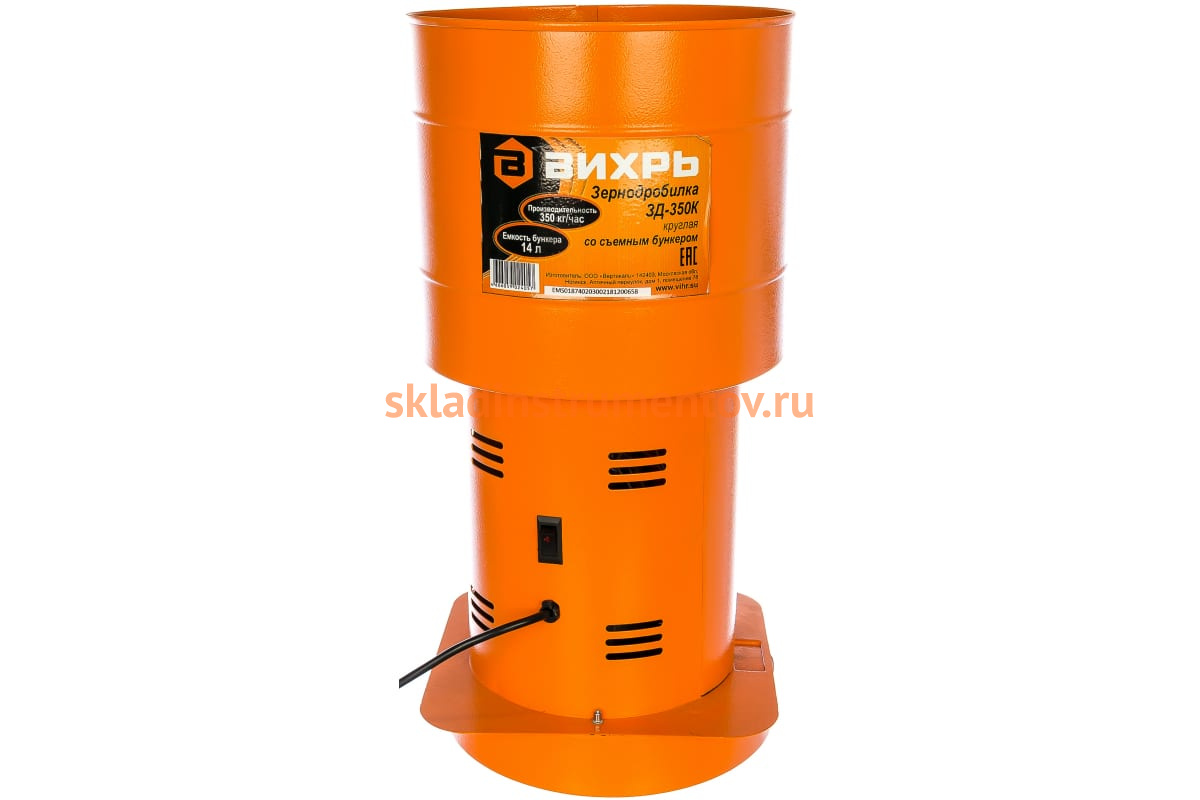 Зернодробилка Вихрь ЗД-350К 74/2/3 - компактное устройство, используемое в домашнем хозяйстве с целью обеспечения кормами животных и птиц.